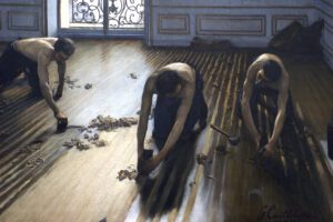- “The Floor Scrapers” (1875) – This piece illustrates men working, highlighting Caillebotte’s interest in the everyday lives of laborers.