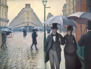 - “Paris Street; Rainy Day” (1877) – This urban scene captures the rhythm and movement of 19th-century Paris, using perspective to draw the viewer into the composition.